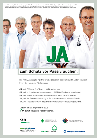 Die Ärzte, Zahnärzte, Apotheker und Drogisten des Kantons St. Gallen stehen geschlossen hinter der Initiative «Schutz vor dem Passivrauchen für alle».